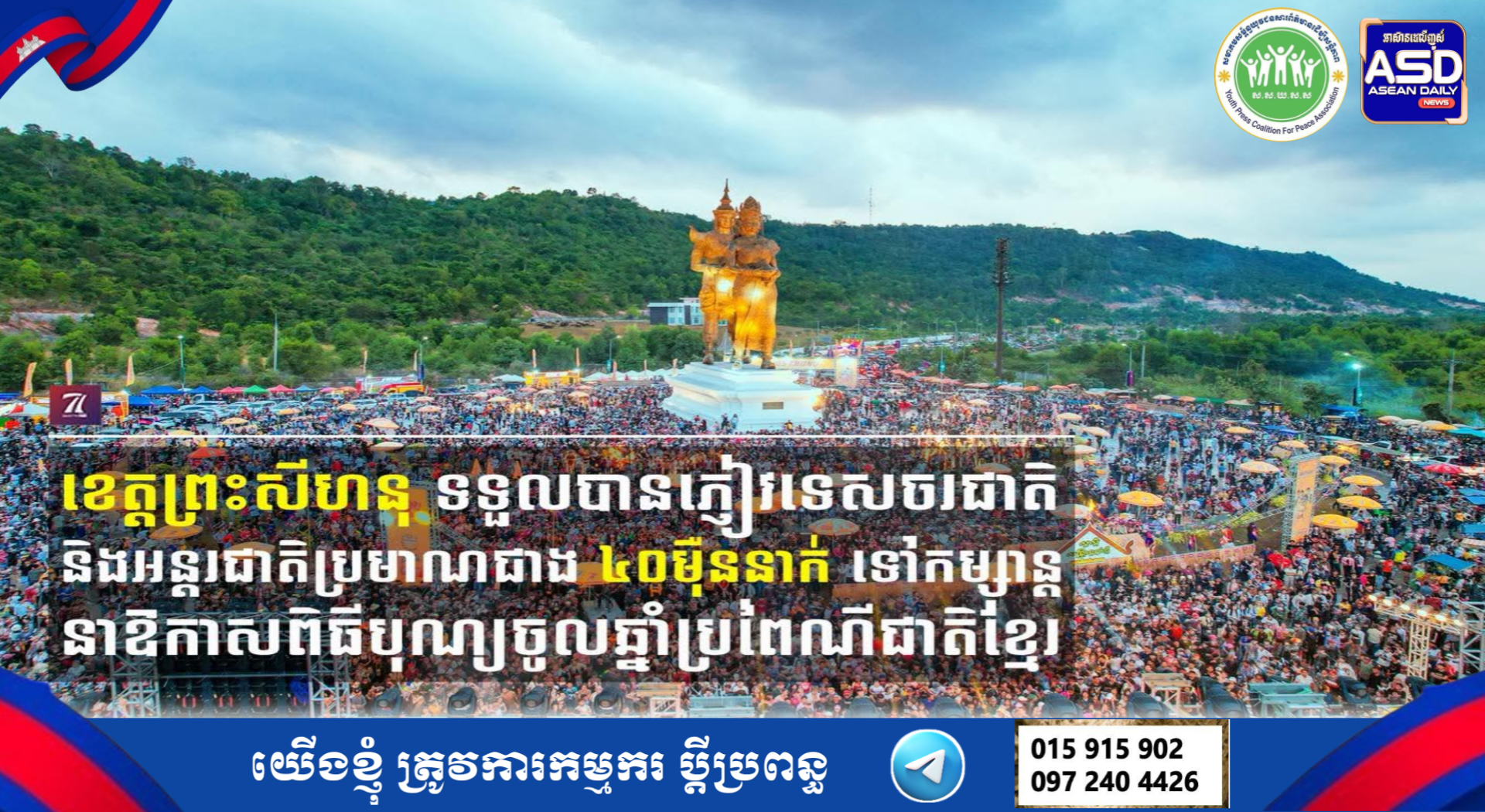 (ខេត្តព្រះសីហនុ): តាមរយៈរបាយការណ៍រដ្ឋបាលខេត្តព្រះសីហនុ បានបង្ហាញពីការដើរកម្សាន្តរបស់ភ្ញៀវទេសចរជាតិ និងអន្តរជាតិ រយៈពេល ៣ថ្ងៃ នៃពិធីបុណ្យចូលឆ្នាំថ្មីប្រពៃណីជាតិខ្មែរ ចាប់ពីថ្ងៃទី១៤-១៦ ខែមេសា ឆ្នាំ២០២៦ ភ្ញៀវទេសចរសរុប ៤០៩.៣៥៨នាក់ ក្នុងនោះភ្ញៀវទេសចរជាតិ ៣៩៩.៧០៦នាក់ និងទេសចរបរទេស ៩.៦៥២ នាក់ បានមកកម្សាន្តសប្បាយនៅតាមរមណីយដ្ឋាន តំបន់ឆ្នេរ កោះ អេកូទេសចរណ៍ និងសហគមន៍នានា។