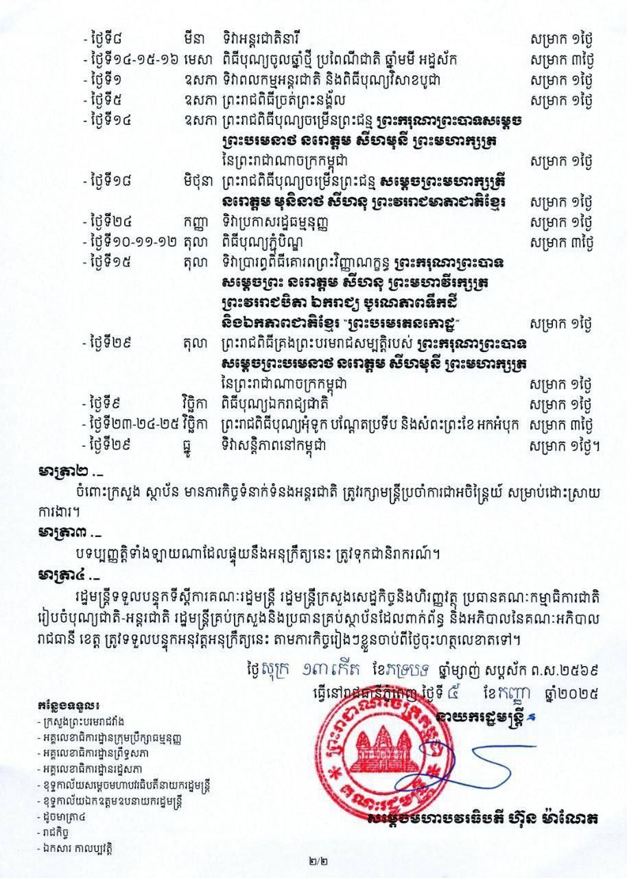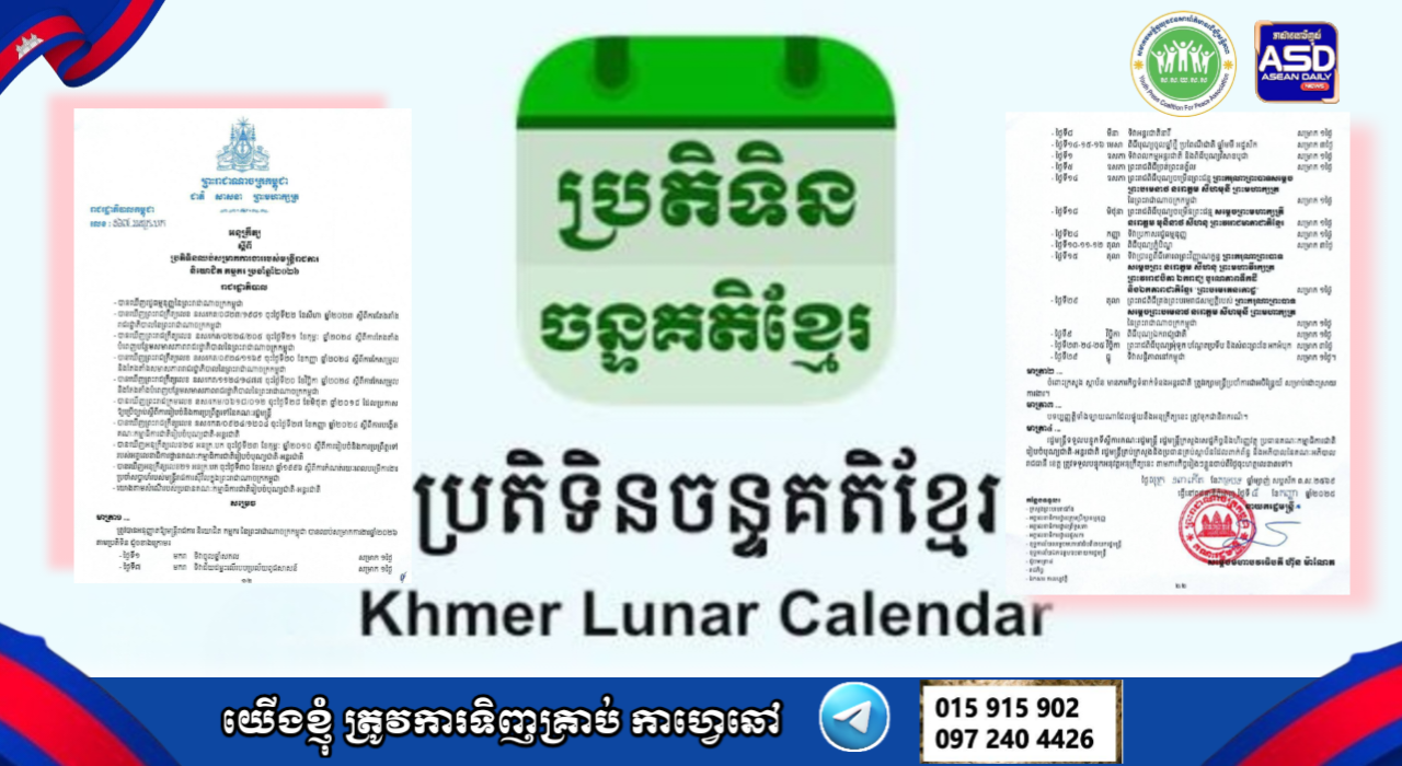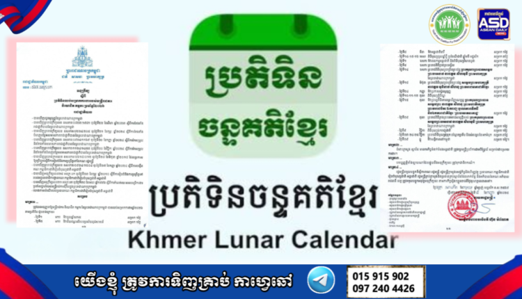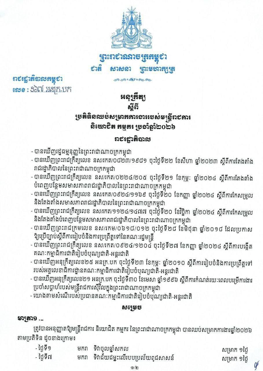 ប្រតិទិនឈប់សម្រាកការងាររបស់មន្ត្រីរាជការ និយោជិត កម្មករ ប្រចាំឆ្នាំ២០២៦ ព័ត៌មានជាតិ ដោយ អាស៊ាន ដេលី ថ្ងៃទី 28 ខែ ខែមេសា ឆ្នាំ 2026 19 ផ្សាយ:ថ្ងៃទី២៨ ខែមេសា ឆ្នាំ២០២៦ ដោយ:សៅ វាសនា(HarryVS) 19 ចែករំលែក