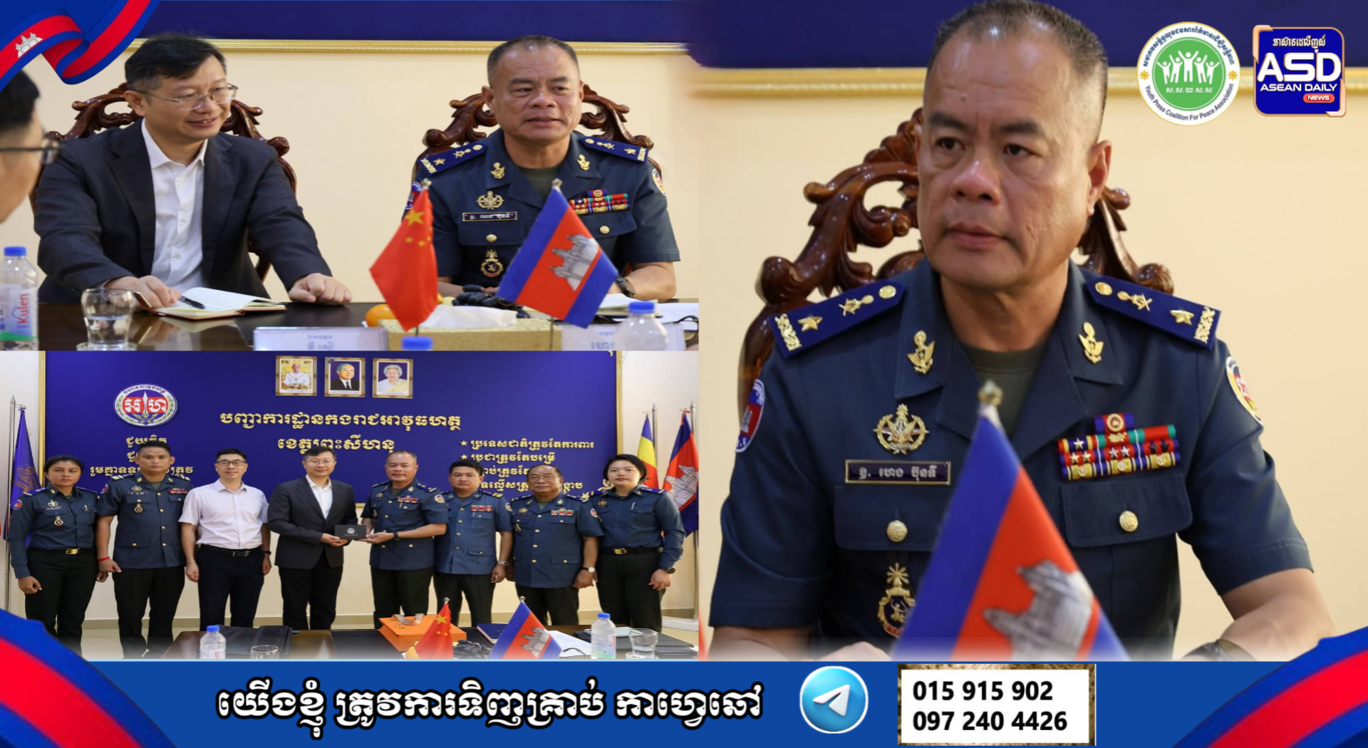 លោកឧត្តម​សេនីយ៍​ត្រី​ហេង​ ​ប៊ុ​នទី​ ​មេបញ្ជាការ​កង​រាជ​អាវុធហត្ថ​ខេត្ត​ព្រះសីហនុ​ ទទួលជួបសម្តែងការគួរសម និងពិភាក្សាការងារជាមួយ ឯកឧត្តម ខឺ សៀ (Mr. KE XUE) ទីប្រឹក្សាអមរដ្ឋទូតនៃសាធារណរដ្ឋប្រជាមានិតចិននៃស្ថានទូតចិនប្រចាំនៅខេត្តព្រះសីហនុ.