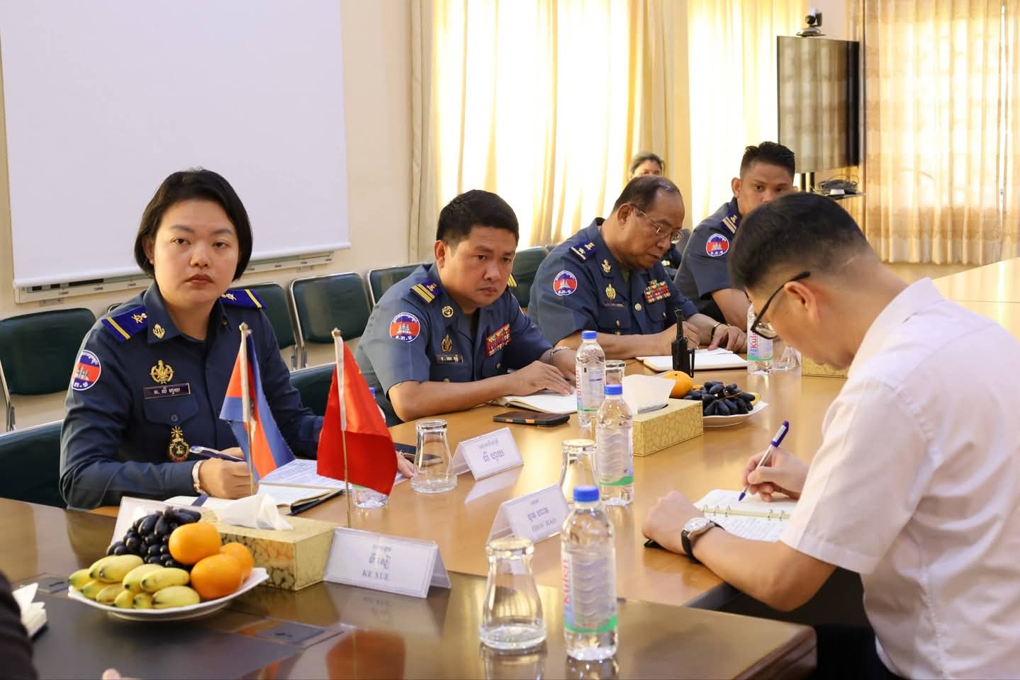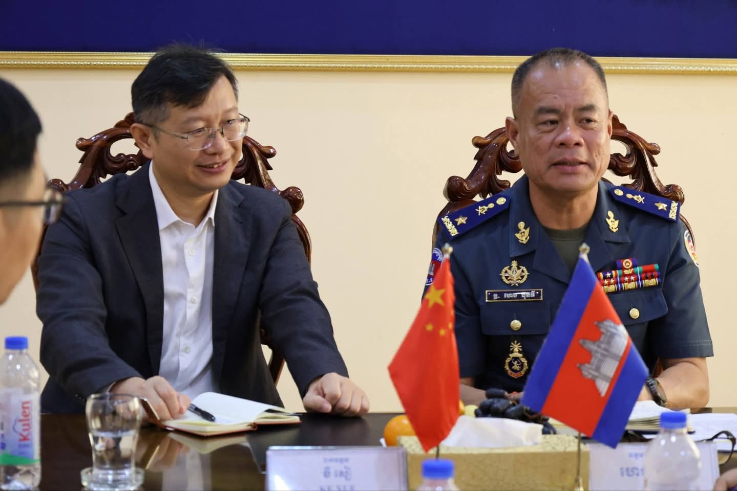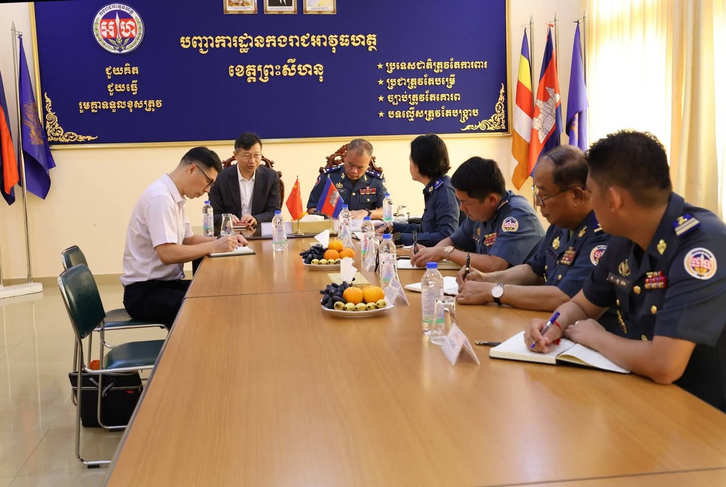 (ខេត្តព្រះសីហនុ)​: នាព្រឹក ថ្ងៃទី២៨ ខែមេសា ឆ្នាំ២០២៦ លោកឧត្តម​សេនីយ៍​ត្រី​ហេង​ ​ប៊ុ​នទី​ ​មេបញ្ជាការ​កង​រាជ​អាវុធហត្ថ​ខេត្ត​ព្រះសីហនុ​ ​បានទទួលជួបសម្តែងការគួរសម និងពិភាក្សាការងារជាមួយ ឯកឧត្តម ខឺ សៀ (Mr. KE XUE) ទីប្រឹក្សាអមរដ្ឋទូតនៃសាធារណរដ្ឋប្រជាមានិតចិននៃស្ថានទូតចិនប្រចាំនៅខេត្តព្រះសីហនុ ព្រមទាំងសហការី នៅក្នុងបញ្ជាការដ្ឋានកងរាជអាវុធហត្ថខេត្តព្រះសីហនុ៕