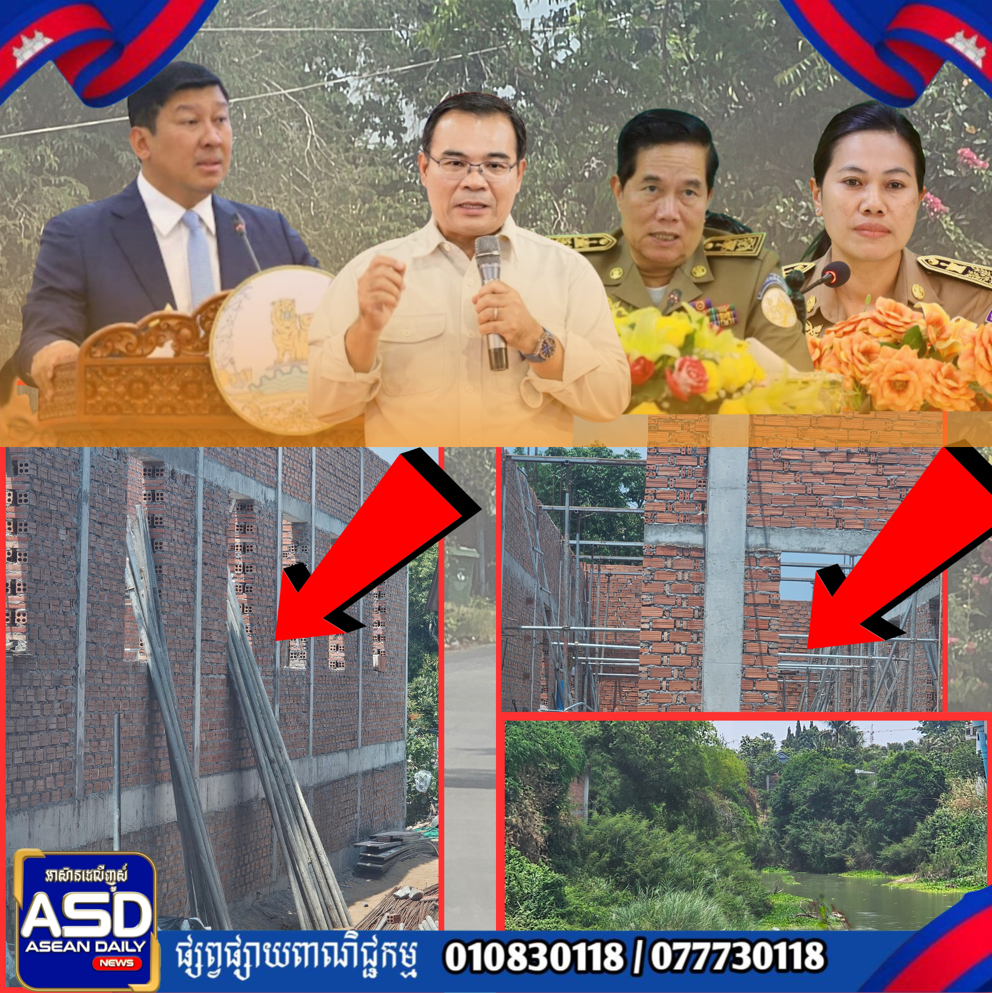 ASEAN DAILY news agency would like to report to Ms. Kim Nhim, Governor of Dangkor District Government, please inspect the above location. The owner of the construction site has built a stone house with a foundation and built a solid structure illegally, encroaching on the riverbank land, which is state property.