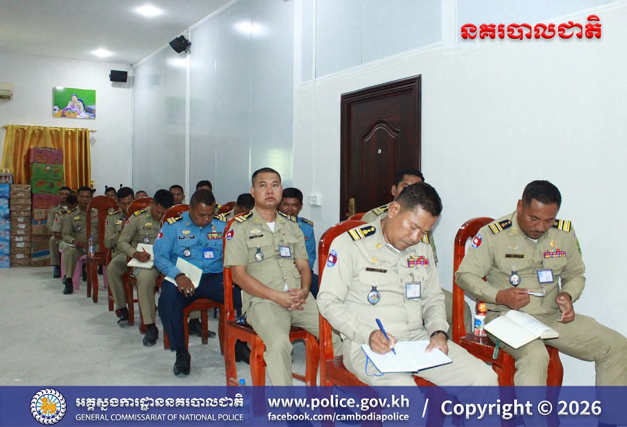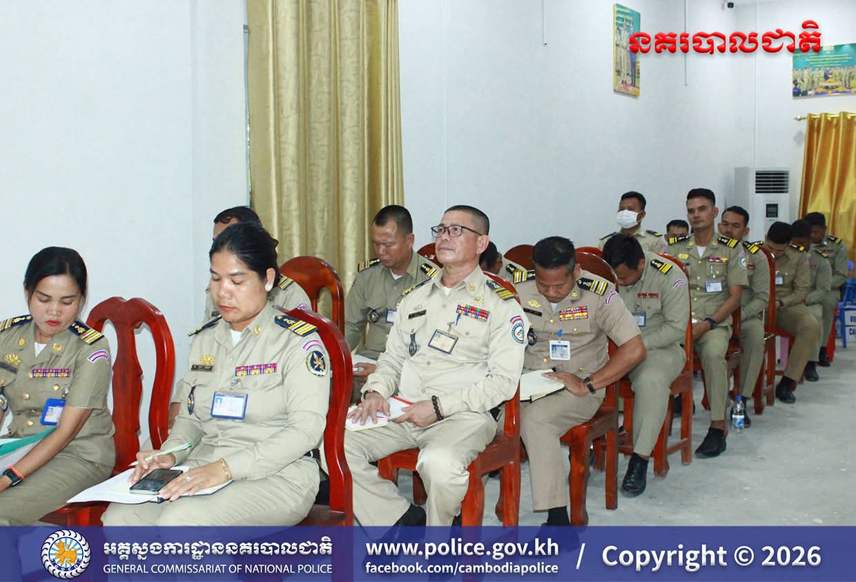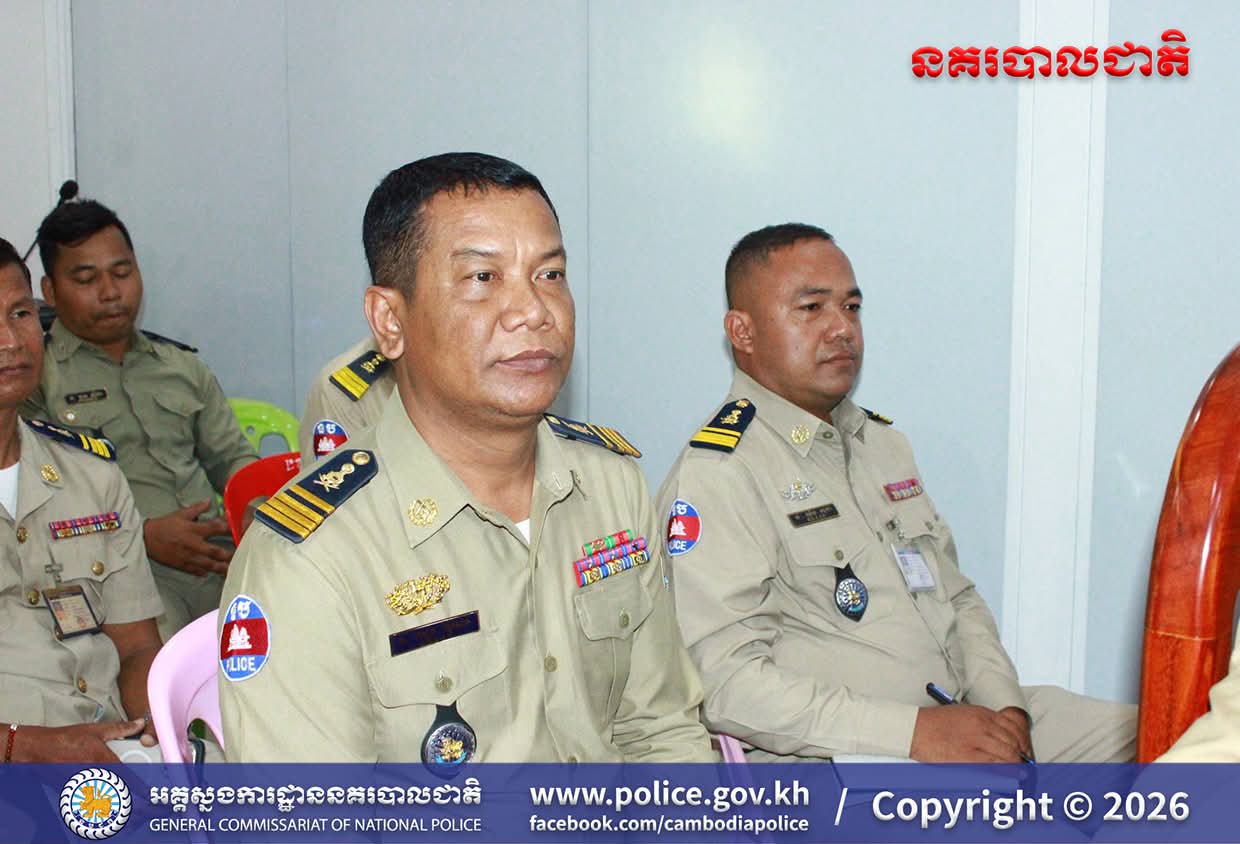 លោកវរសេនីយ៍ឯក ហុង ពិសិដ្ឋ ដឹកនាំកិច្ចប្រជុំប្រចាំសប្ដាហ៍ និងផ្សព្វផ្សាយផែនការការពារសន្តិសុខ សុវត្ថិភាព និងការផ្ដល់សេវាសាធារណៈជូនប្រជាពលរដ្ឋ
